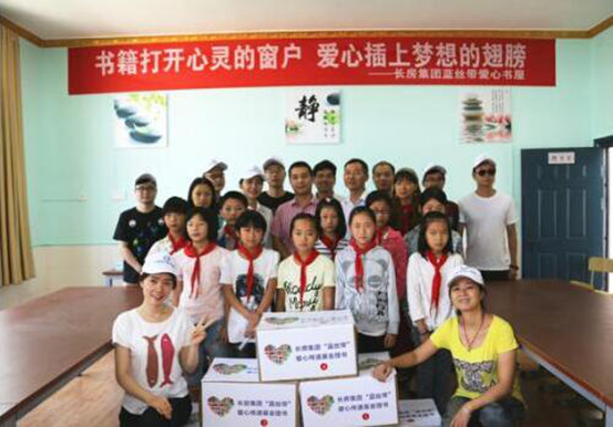2016年初,晨報(bào)周刊攜手長房梅溪香山、長房集團(tuán)藍(lán)絲帶愛心傳遞基金共同發(fā)起“萬人眾籌圖書館”愛心公益活動(dòng),為湖南貧困山區(qū)學(xué)校捐建圖書室。以點(diǎn)亮希望之光、傳遞溫暖力量為主題的“長沙之光”微信文稿每被轉(zhuǎn)發(fā)一次,即為籌建山區(qū)學(xué)校愛心圖書室捐贈(zèng)5元?;顒?dòng)開展以來,贏得了許多社會(huì)愛心人士的熱烈反響和廣泛共鳴,共有1萬余人次參與活動(dòng),最終,通過長房集團(tuán)藍(lán)絲帶愛心傳遞基金捐款10萬元,用于長沙縣福臨鎮(zhèn)古華山村梅林小學(xué)和寧鄉(xiāng)縣灰湯鎮(zhèn)洞庭橋完全小學(xué)兩所貧困學(xué)校愛心書屋的建設(shè),長沙市基少年發(fā)展基金會(huì)理事長羊舒麟代表兩所學(xué)校接收捐贈(zèng)。